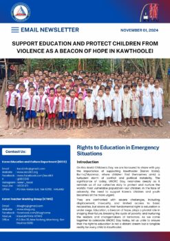 We are pleased to share our latest e-newsletter, focused on the critical theme of Inclusive Education in conflict-affected areas, especially in honor of UNCRC Day. The newsletter, titled “Support Education and Protect Children from Violence as a Beacon of Hope in Kawthoolei,” highlights our continued efforts to provide safe, inclusive educational opportunities for children.