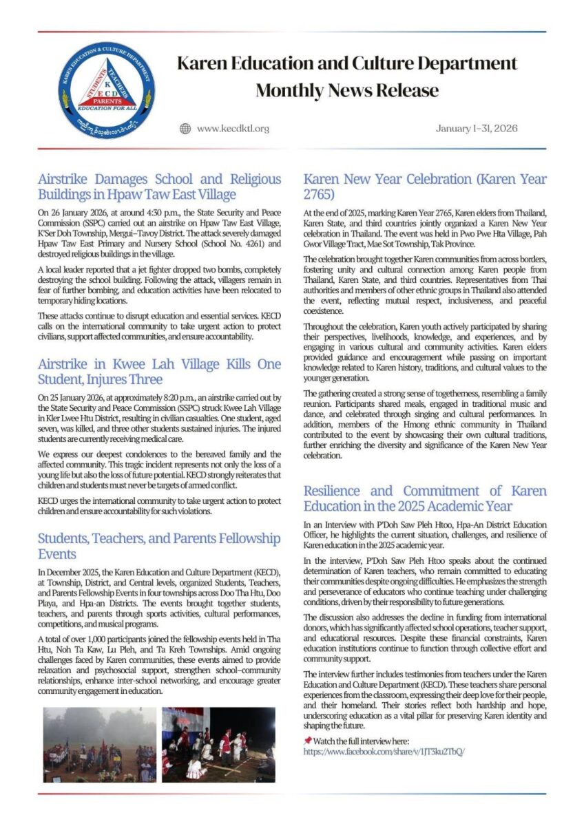 Karen Education and Culture Department Monthly News Release (January 1 to 31 . 2026)